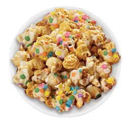 Birthday cake popcorn is a party in a bag! We take our freshly popped corn and cover it in a sweet vanilla glaze, then finish it off with confetti sprinkles. 1/2 gallon. Trans fat free. 100% whole grain. GMO free corn. 100% gluten free. No high fructose corn syrup.